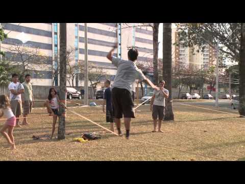 Matéria sobre o slackline em Bauru: equilíbrio, força e resistência. Estes são os requisitos necessários para a prática do slackline. E eu, vocês já sabem, lógico que treino os ásanas do Yôga sobre essa cordinha que não para quieta. Concentração e diversão total!
